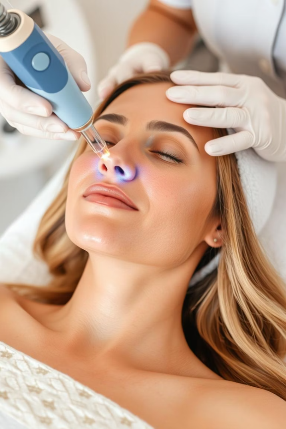 HydraFacial is ideal for summer skin maintenance, providing gentle exfoliation without causing sun sensitivity. This multi-step treatment cleanses, extracts impurities, and infuses skin with hydrating serums.